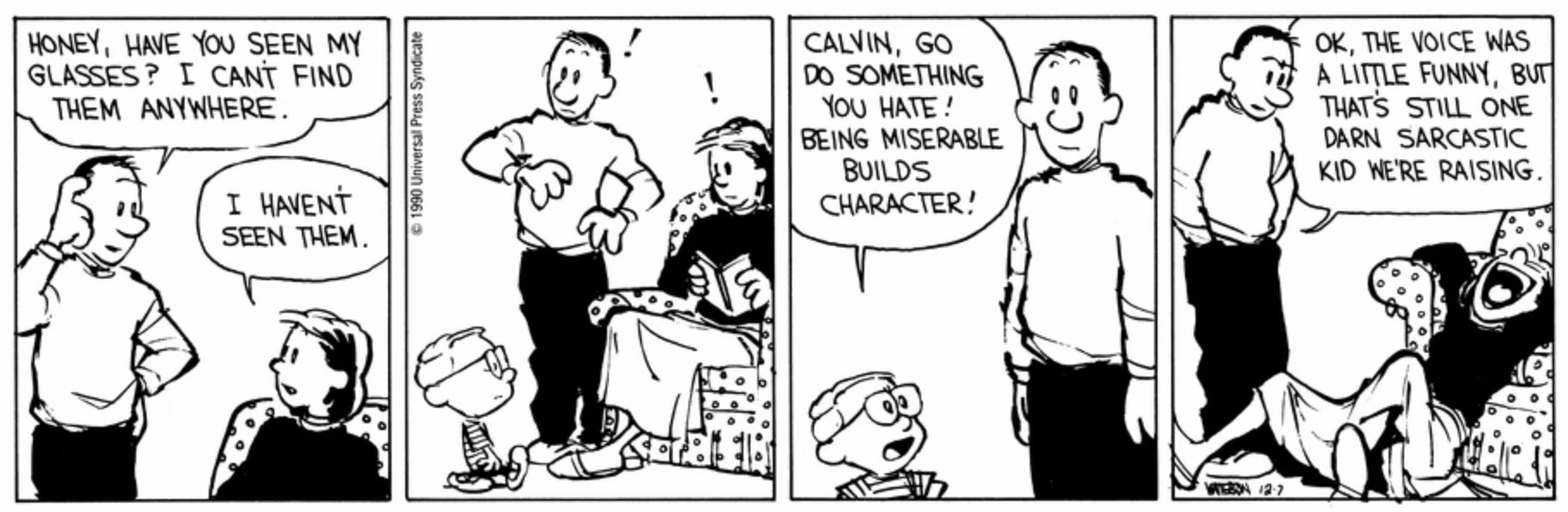 Panel 1Dilbert: “Uh… Wally, you’re wearing only underwear at work.”Wally: “I’m trying to get fired.” Panel 2Wally: “The company layoff plan is very generous. I’ll get a big pile of money if they ask me to leave.” Panel 3Wally: “This has given me a degree of freedom in dealing with local management.”(Wally puts his underwear over the pointy hair … Read more